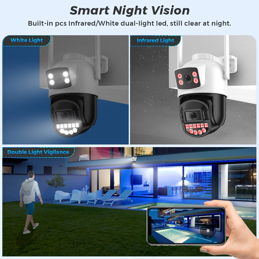 Built -in White LED and IR LED, you can choose color night vision or infrared black and white night vision.