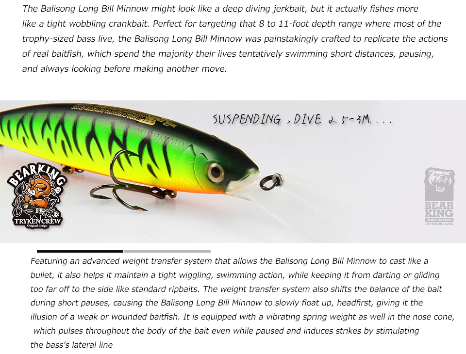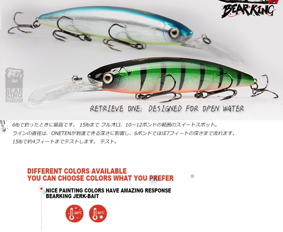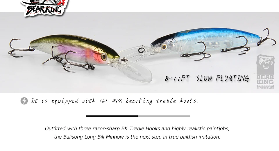 1.Bearking 2x strong treble Hooks: it is armed with bearking hooks,stronger power, durable, freshwater seawater universal.