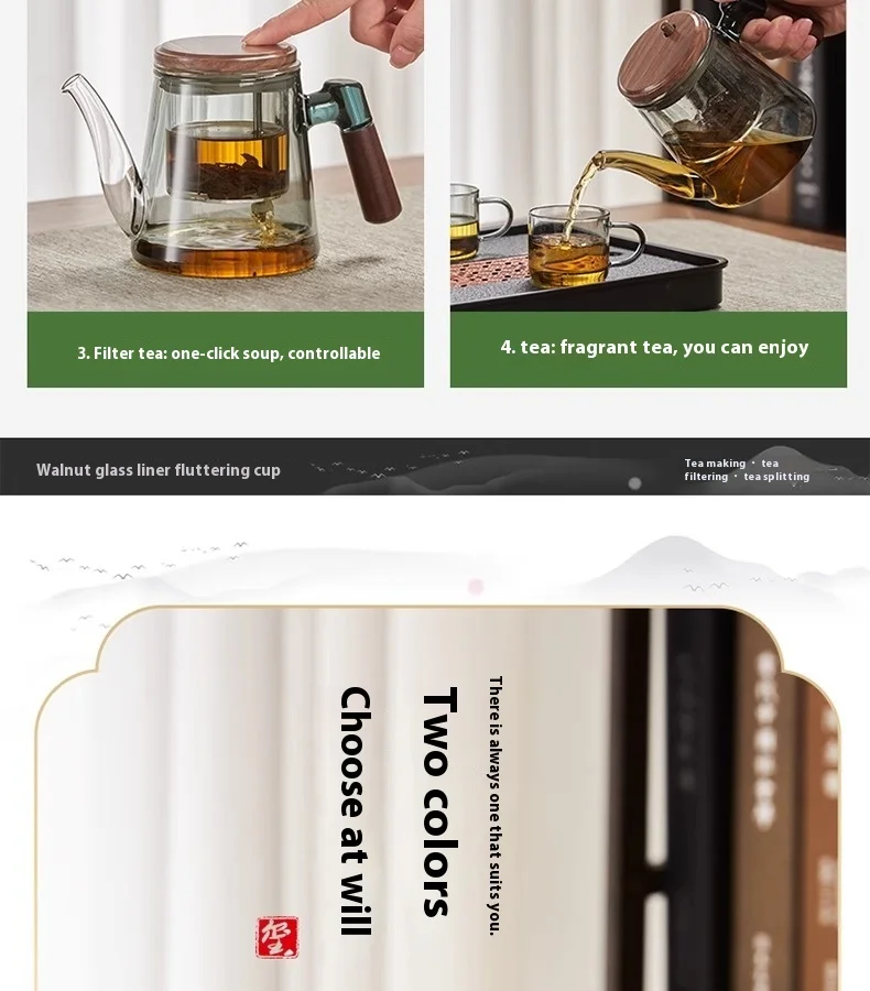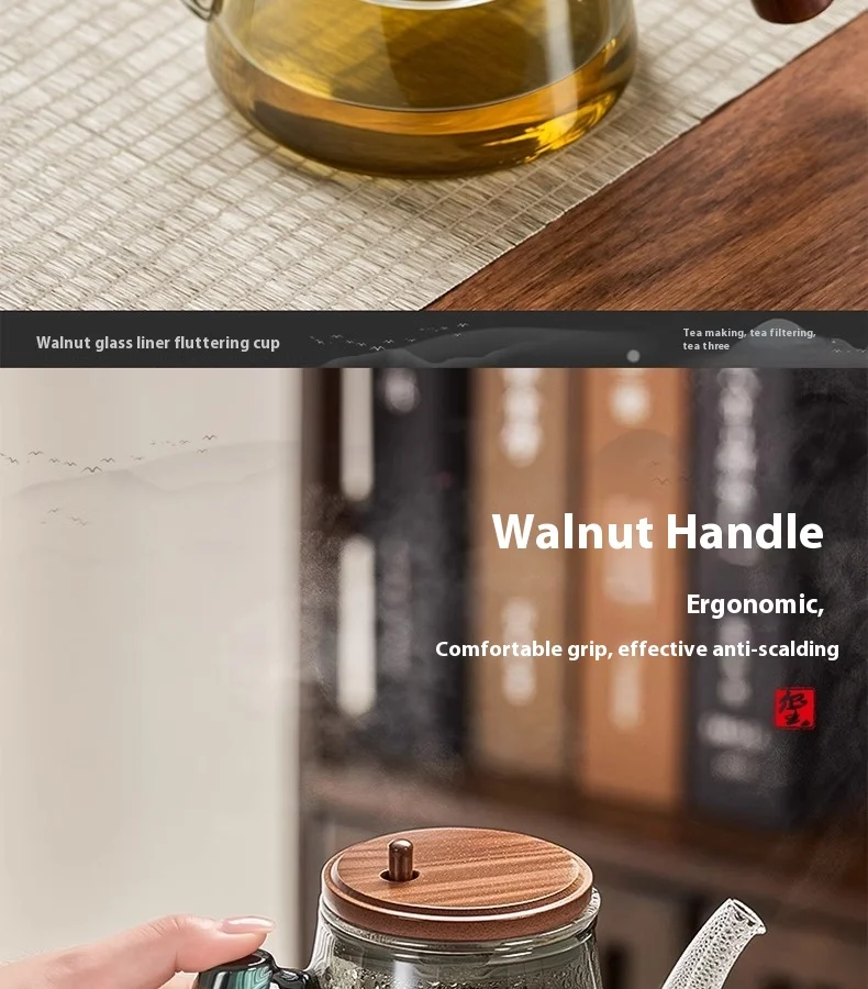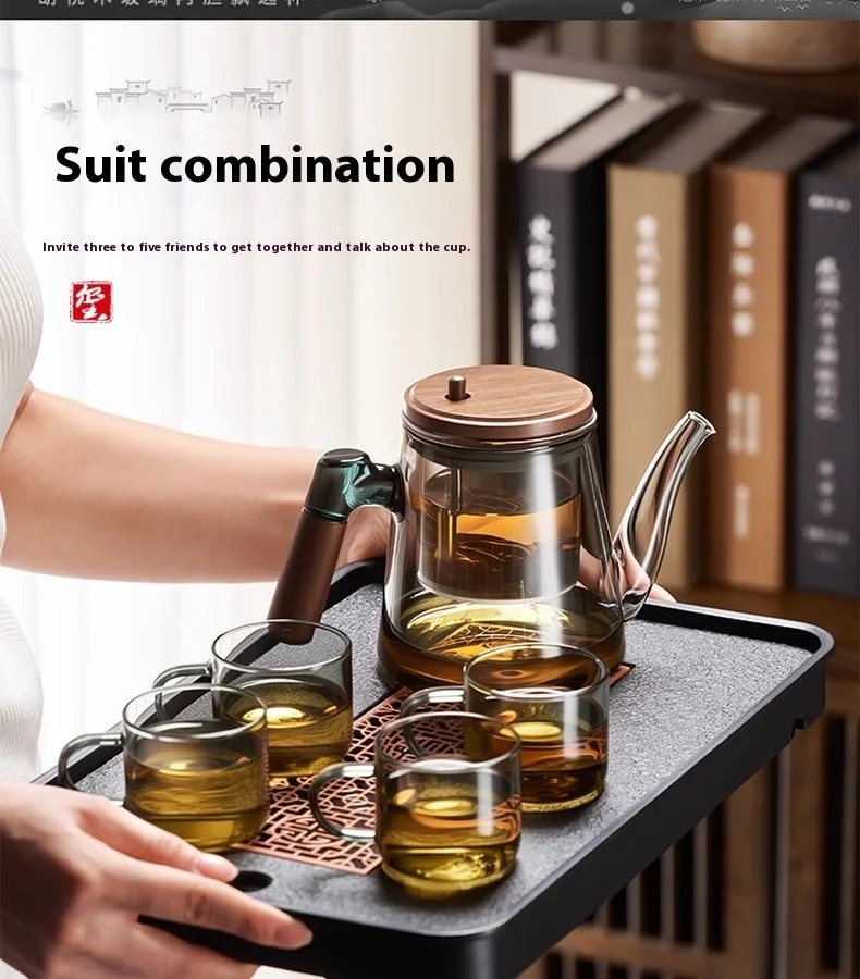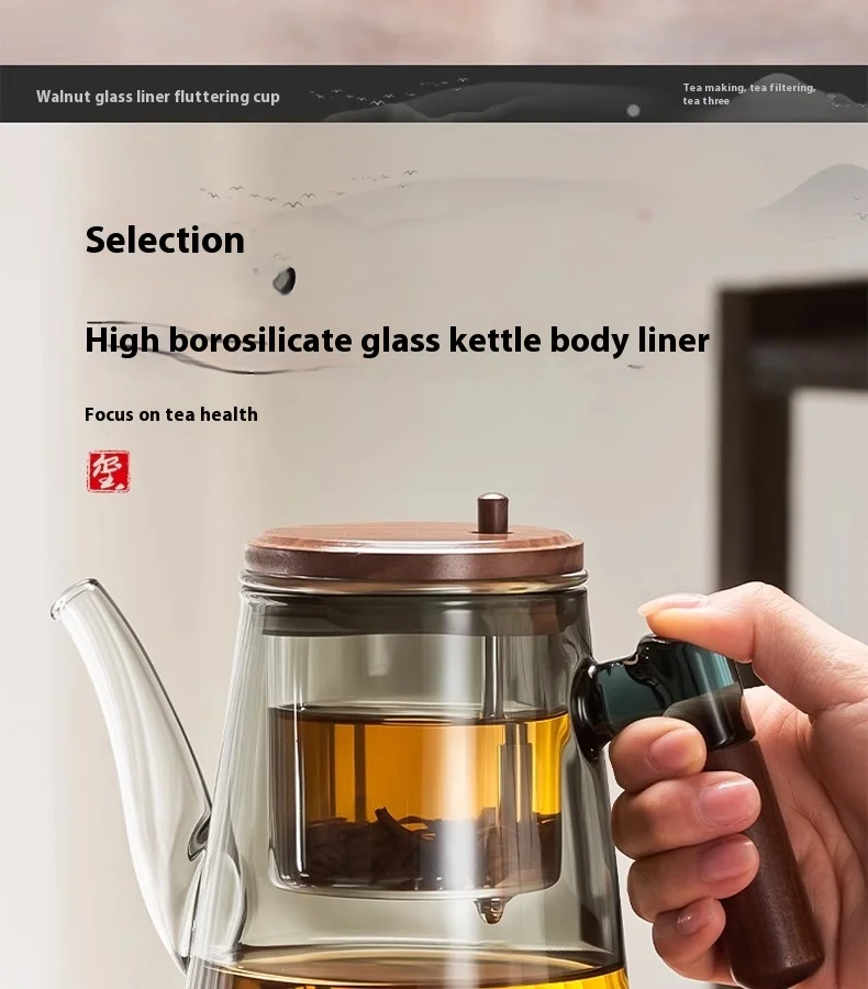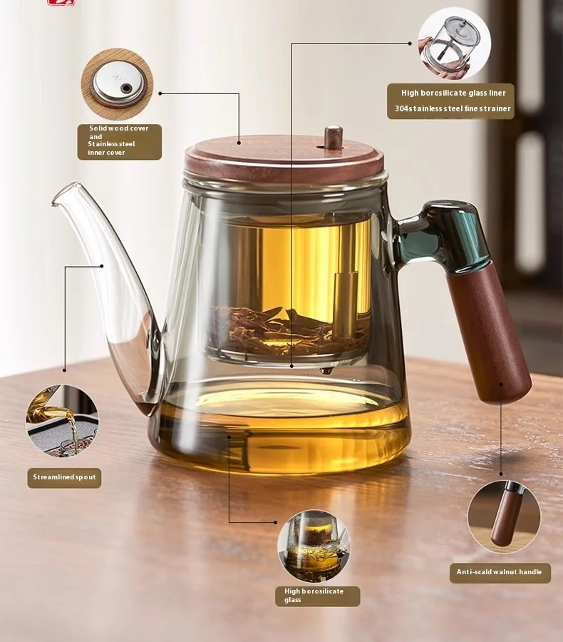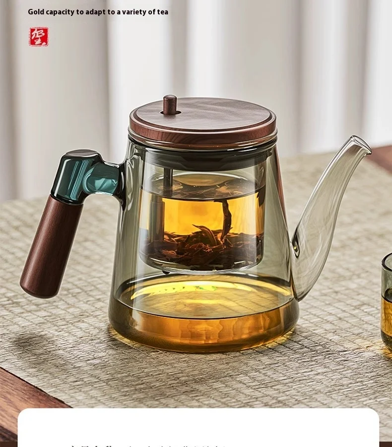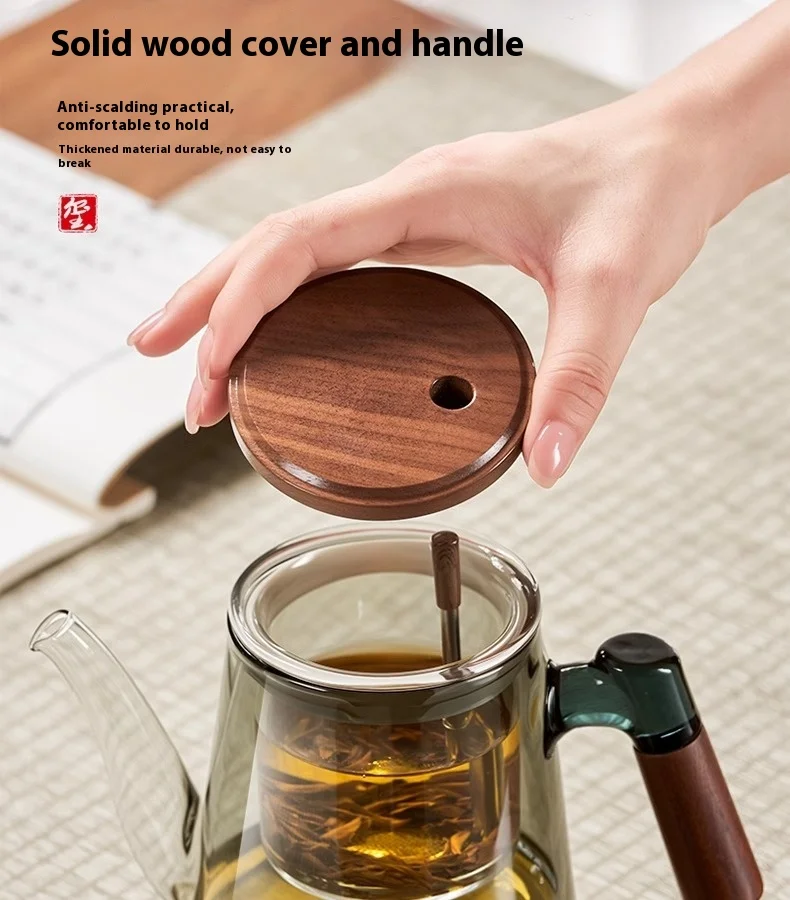 GIANXI Wooden Handle Flowing Teapot Tea Separation Cup Full Glass Inner Bubble Teapot Household Press Filter Tea Set Tea Cup