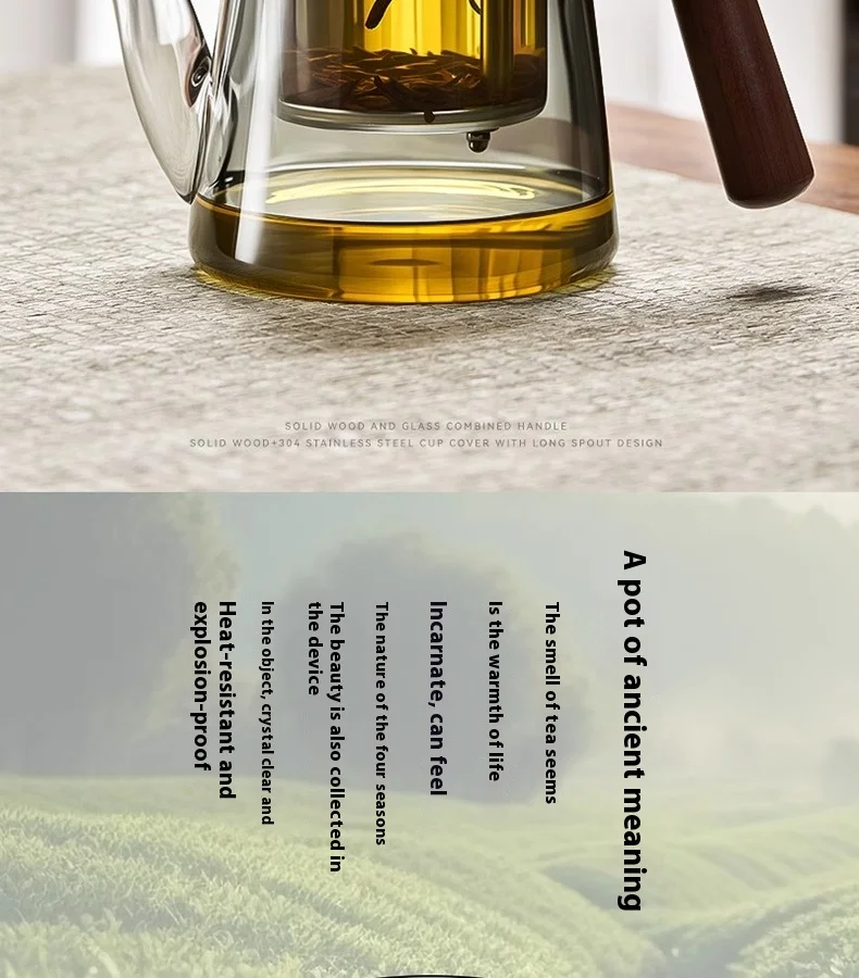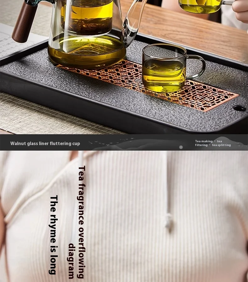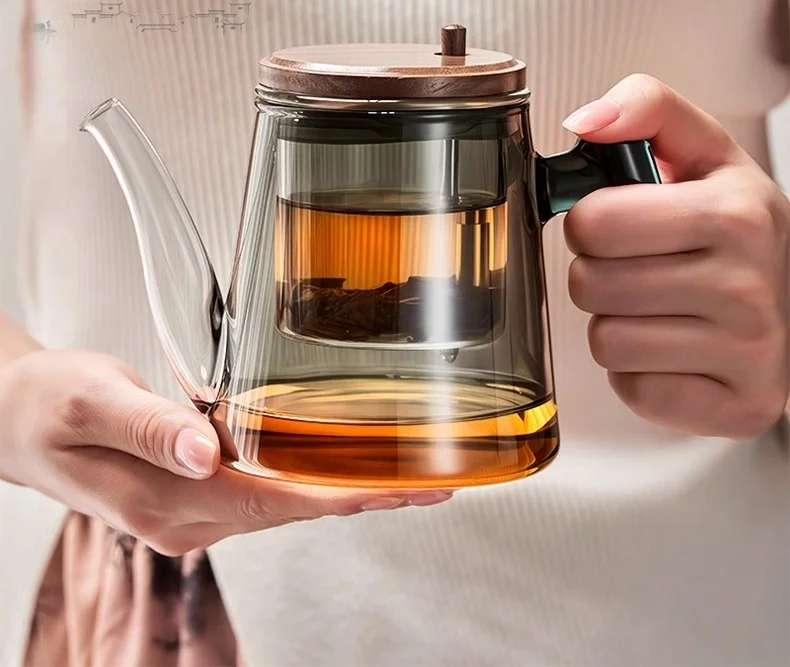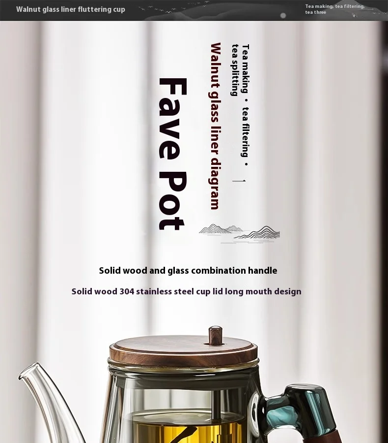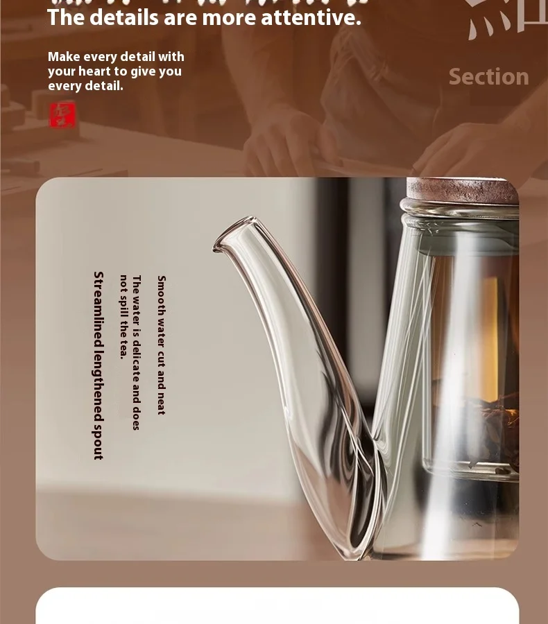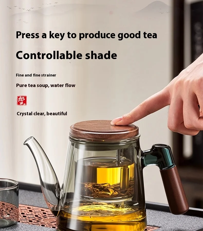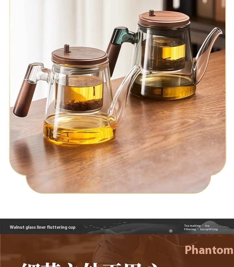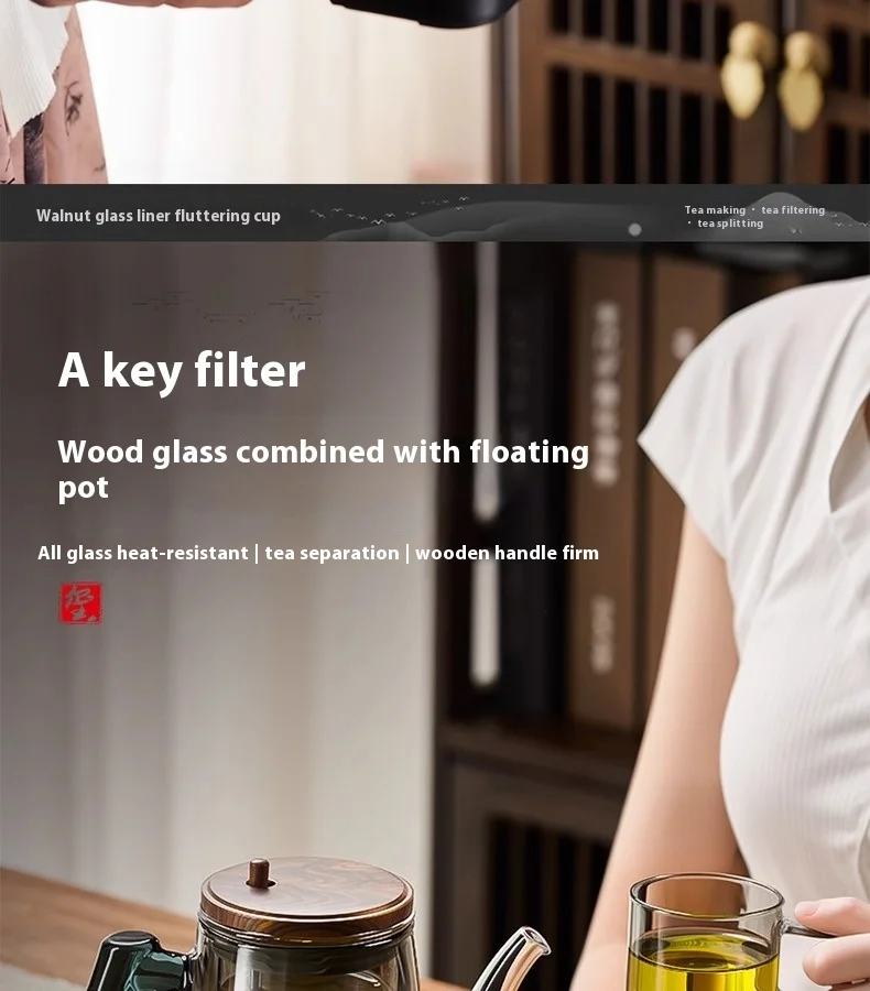 GIANXI Wooden Handle Flowing Teapot Tea Separation Cup Full Glass Inner Bubble Teapot Household Press Filter Tea Set Tea Cup