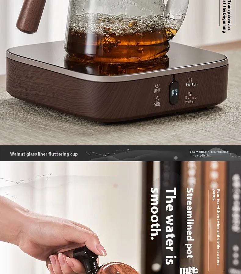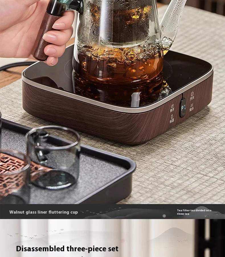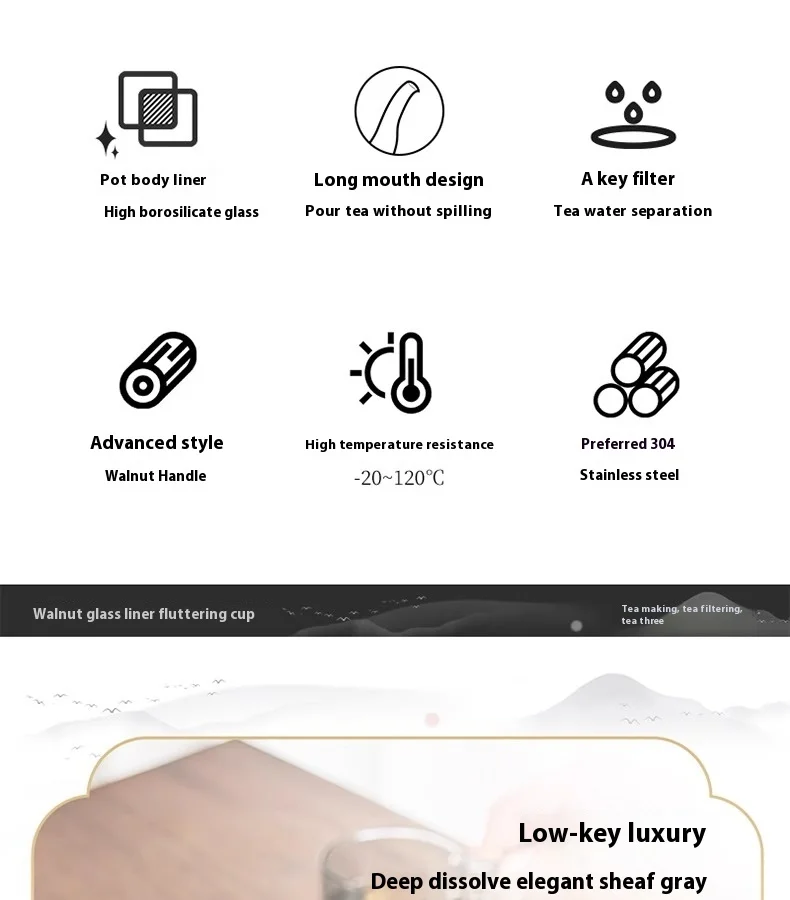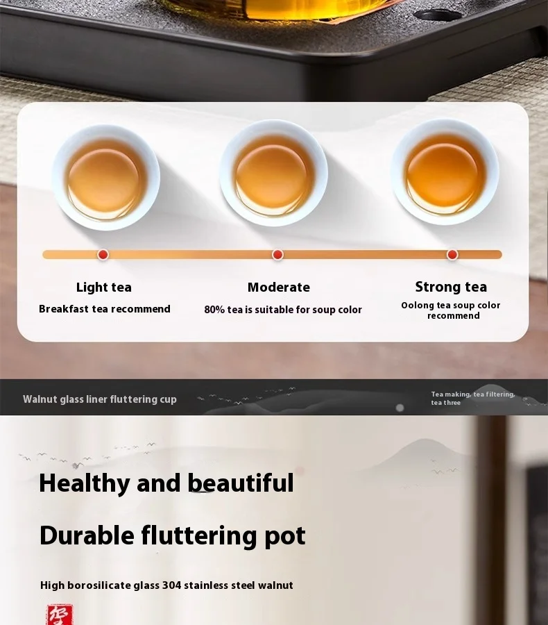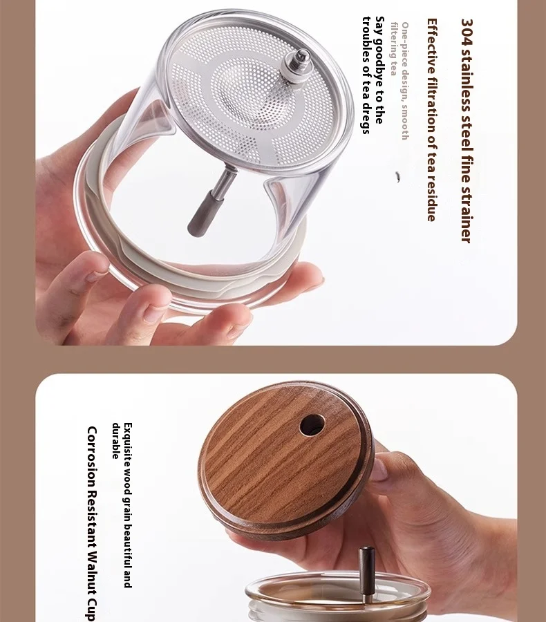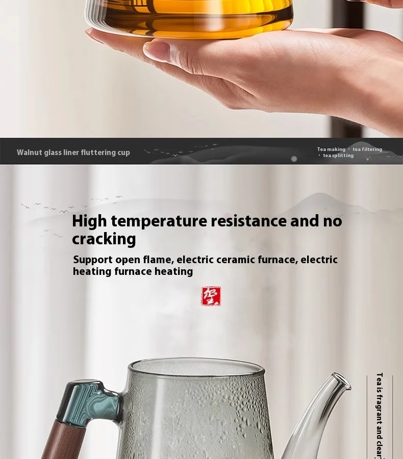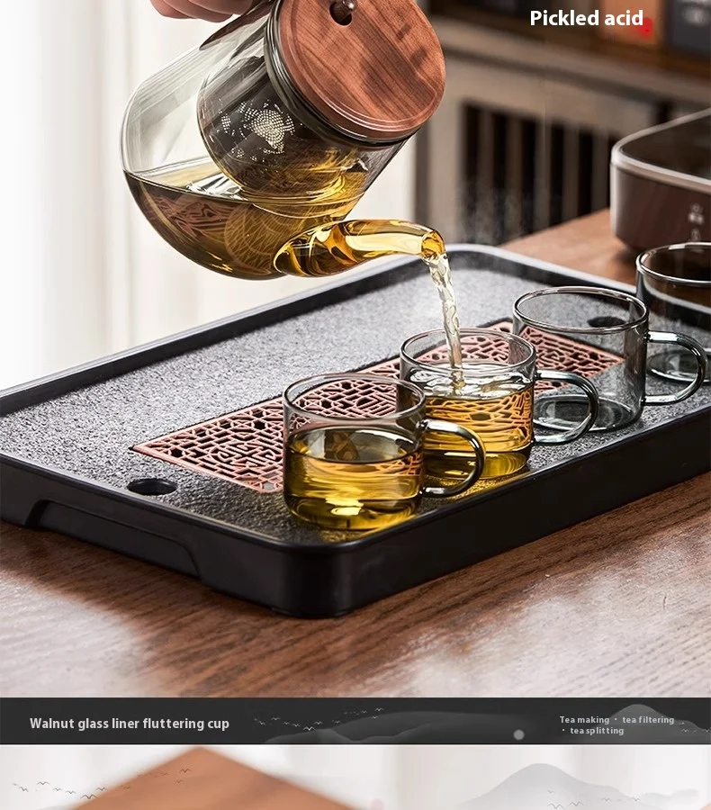 GIANXI Wooden Handle Flowing Teapot Tea Separation Cup Full Glass Inner Bubble Teapot Household Press Filter Tea Set Tea Cup
