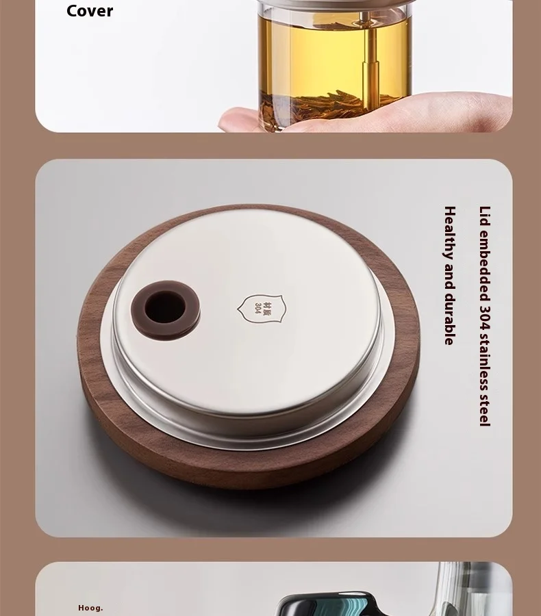 Liner: high borosilicate glass, 304 stainless steel filter lid/handle :304 stainless steel, walnut