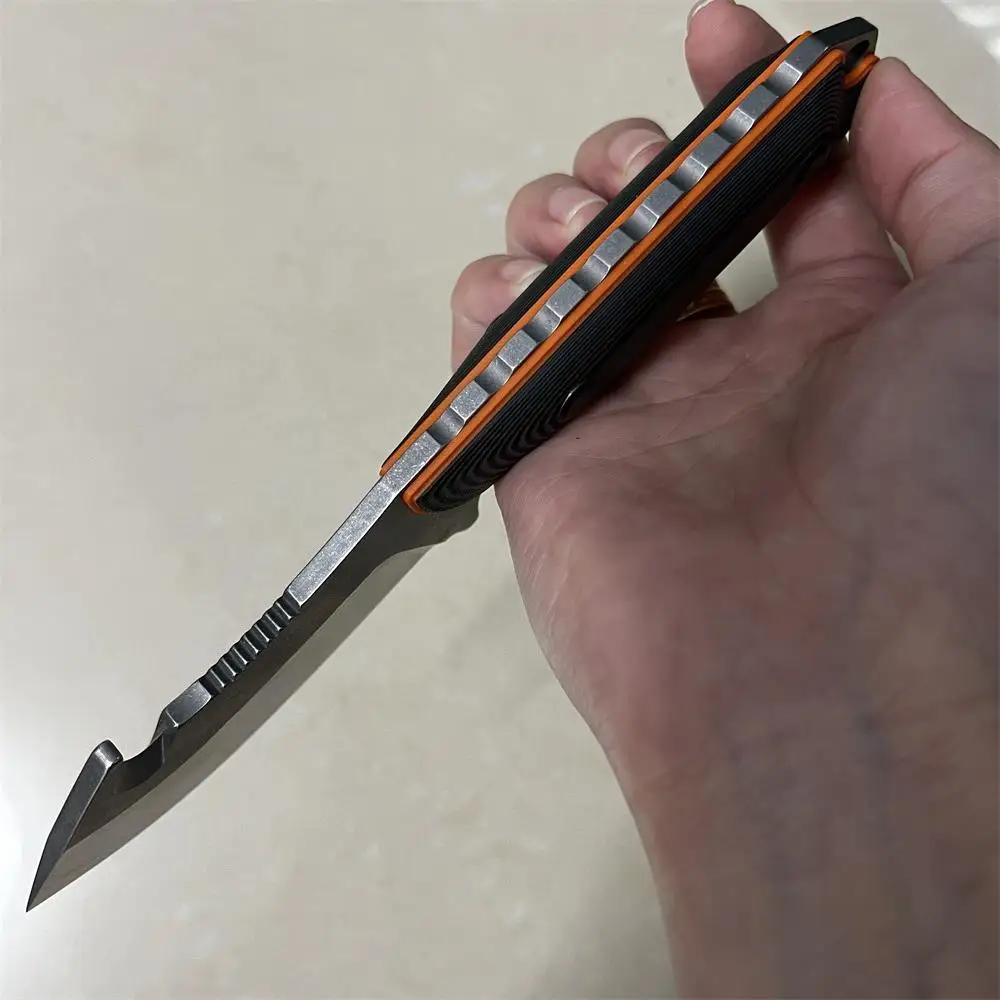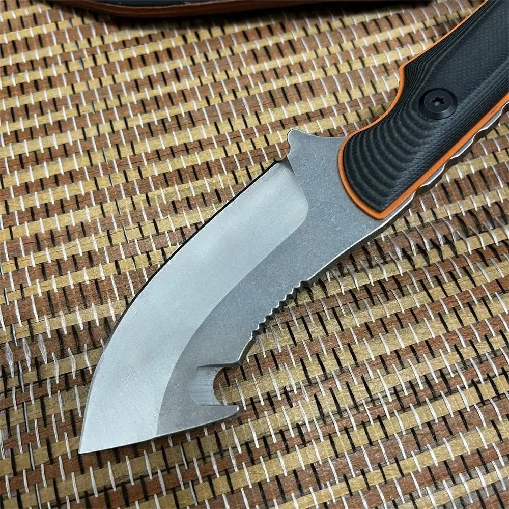 Hunting knife EDC Outdoor Fixed Blade Hunting Knife, G10 Anti-slip Handle with Cowhide Sheath, for Tactical Camping Hiking Tool