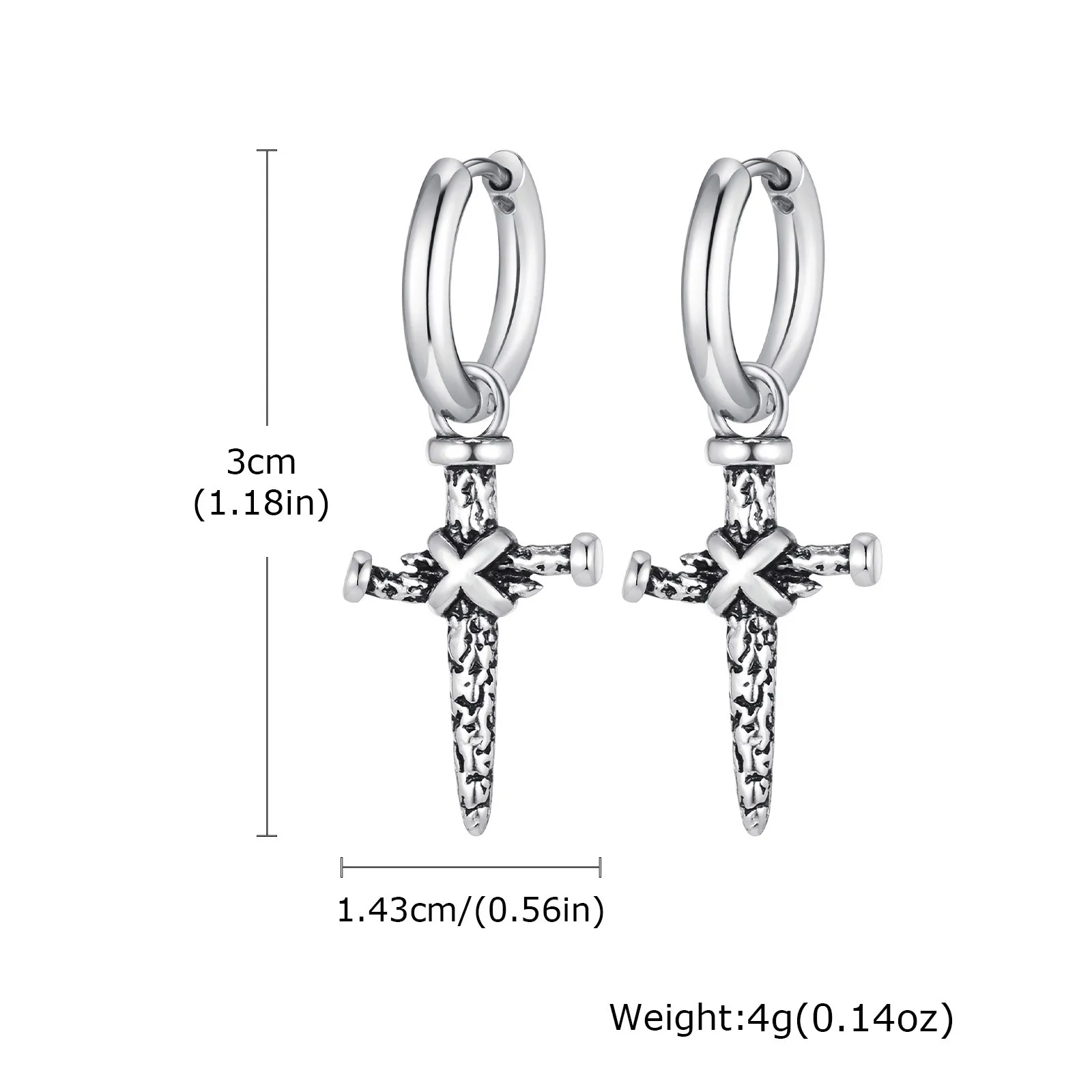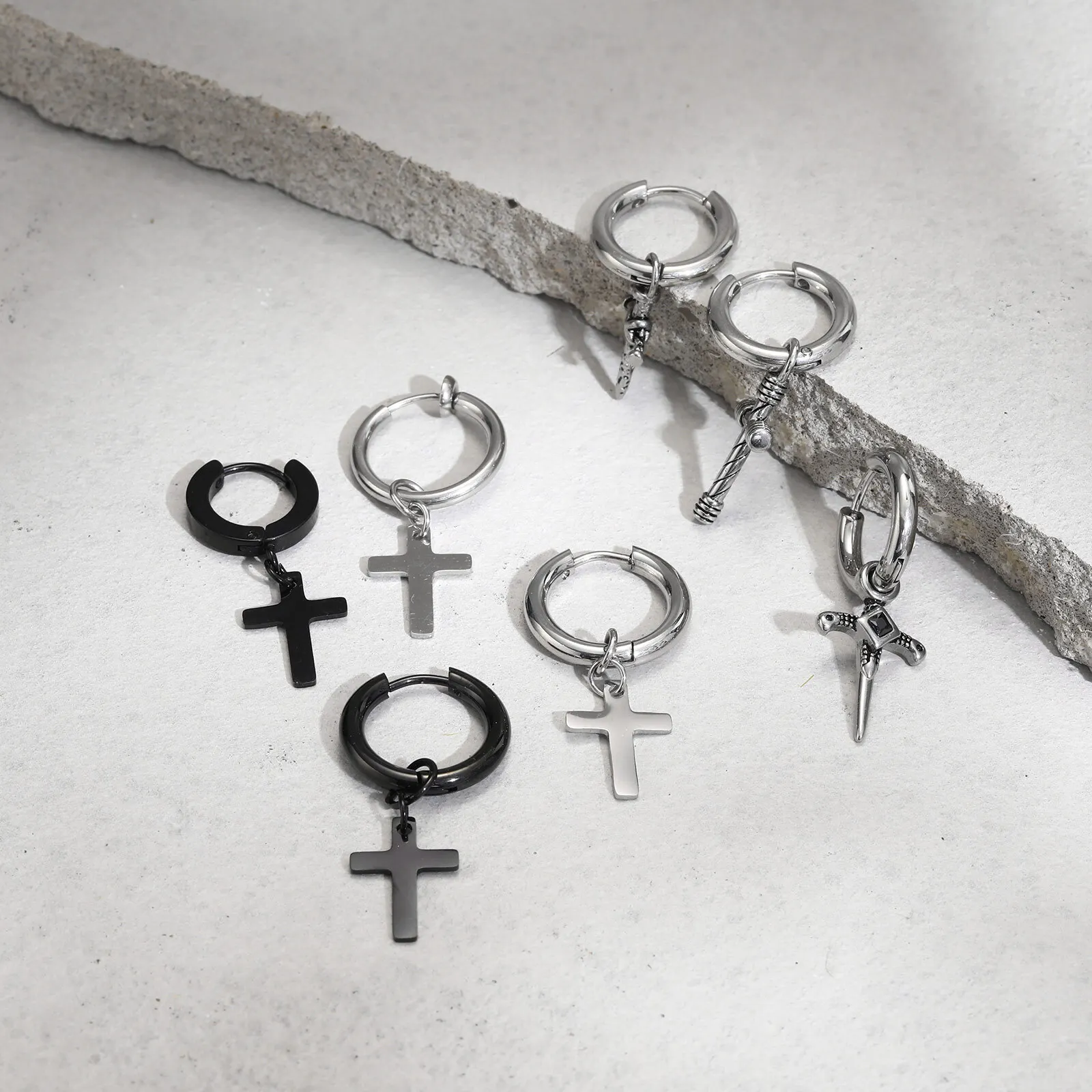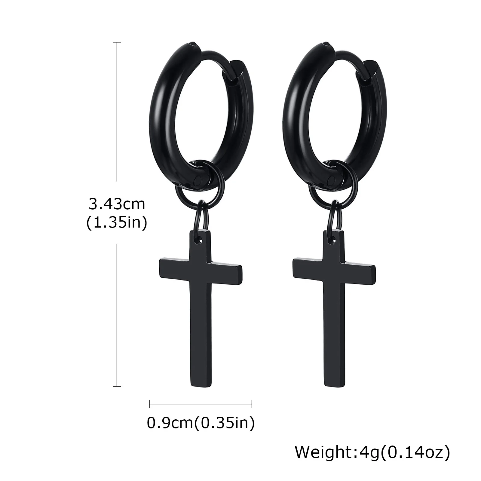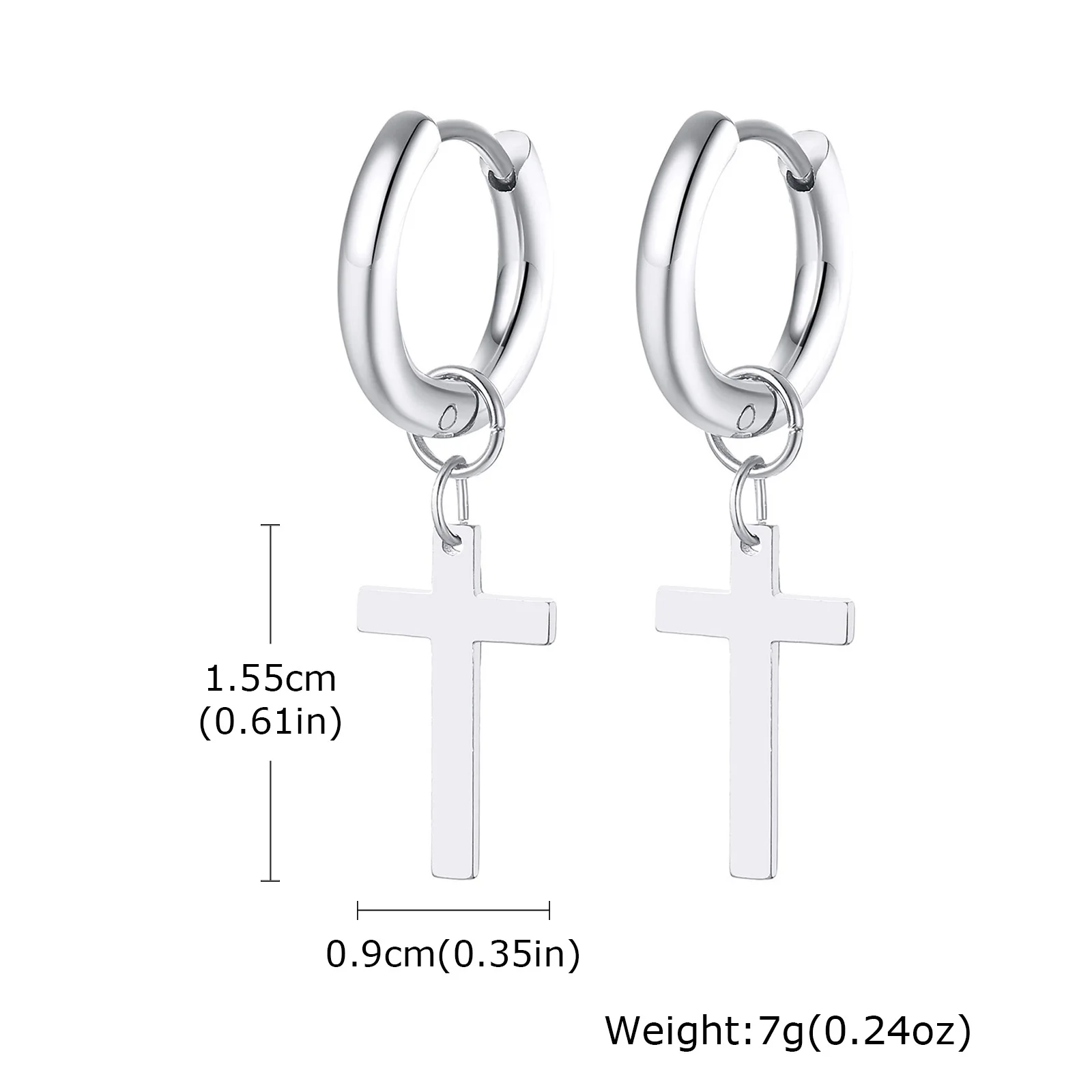Vnox Single Stainless Steel Men Cross Punk Dangle Earrings High-end Fashion Hoop Earrings For Boys Ear Jewelry Friendship Gifts